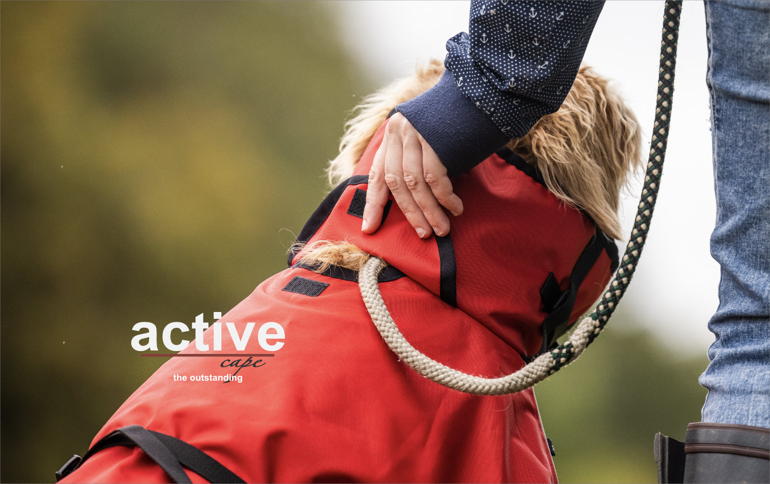 Das Cape kann schnell an- und ausgezogen werden. Somit ist es ideal, um den Hund auch vor dem Training, nach dem Training und in Pausenzeiten warm zu halten.