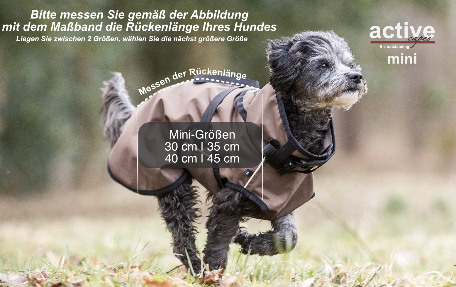 Das Active Cape Light MINI sorgt dafür, dass auch kleine Hunde bei Kälte und Nässe warm und trocken verpackt sind!
