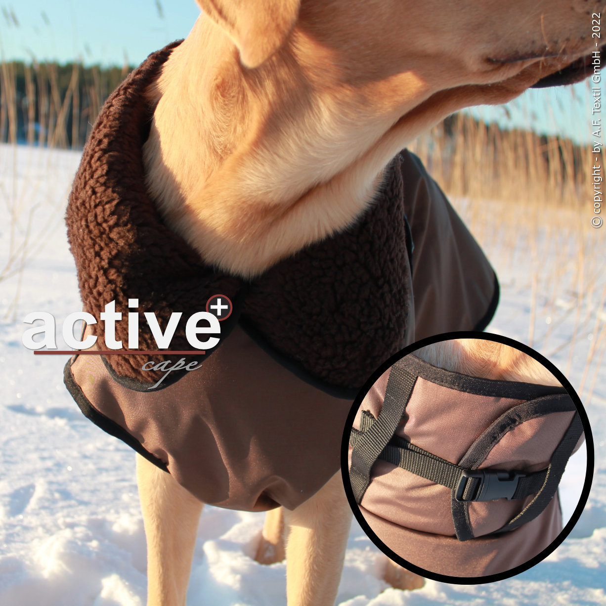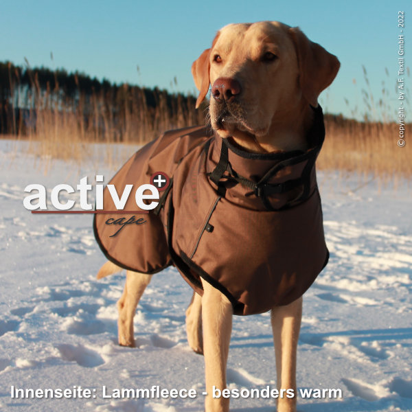 Das active cape + ist speziell für Hunde gedacht, die bei extremen Temperaturen warm gehalten werden müssen. Das als Futter verwendete weiche Lammfleece hält euren Hund warm, während das Außenmaterial aus 100% Polyamid, mit einer sehr hohen wasserabweisenden Beschichtung, die Wind- und Wasserdichtigkeit sowie die Atmungsaktivität gewährleistet.