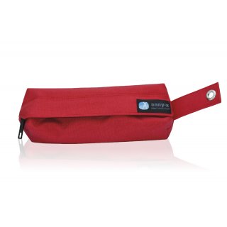 An der seitlich befindlichen Öse kann der Beutel mit einem Karabiner versehen werden, um ihn bequem an der annyx Tasche oder an der Gürtelschlaufe zu befestigen.