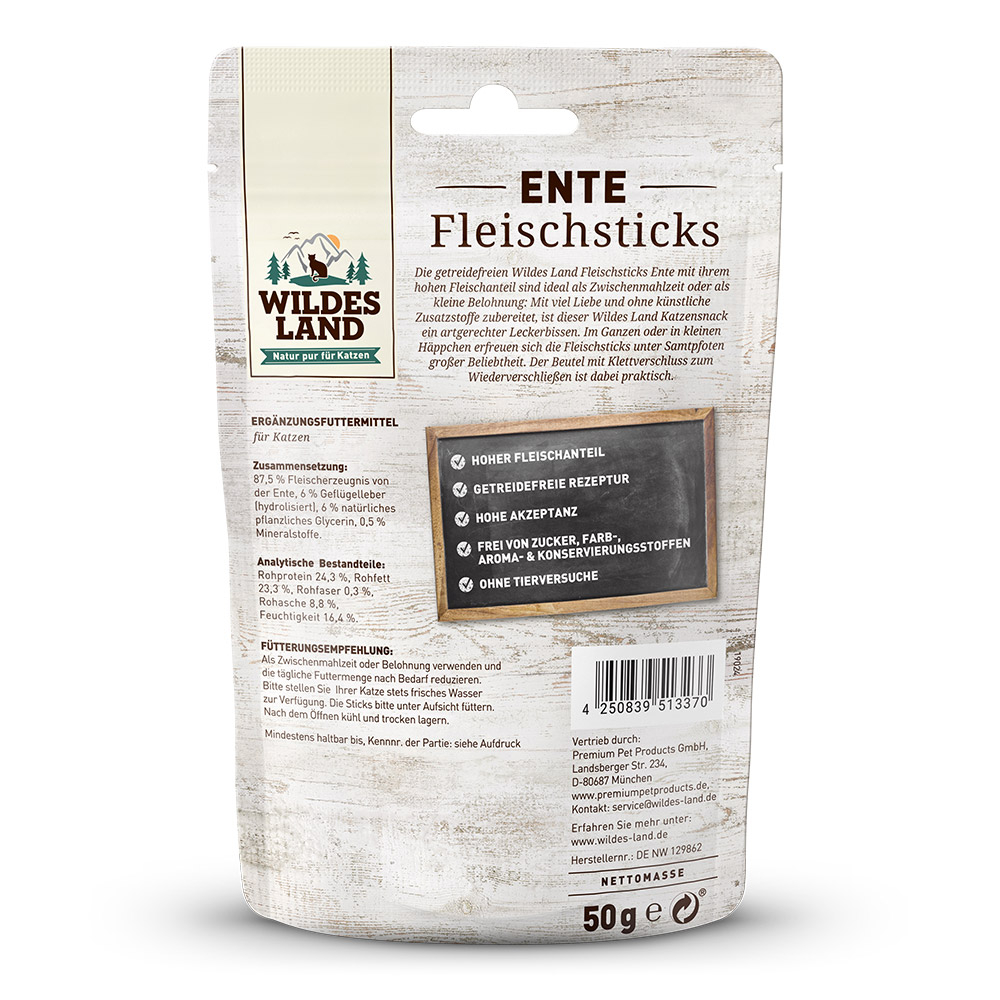 Produktinformationen "Wildes Land - Fleischsticks Ente - Leckerli für Katzen"