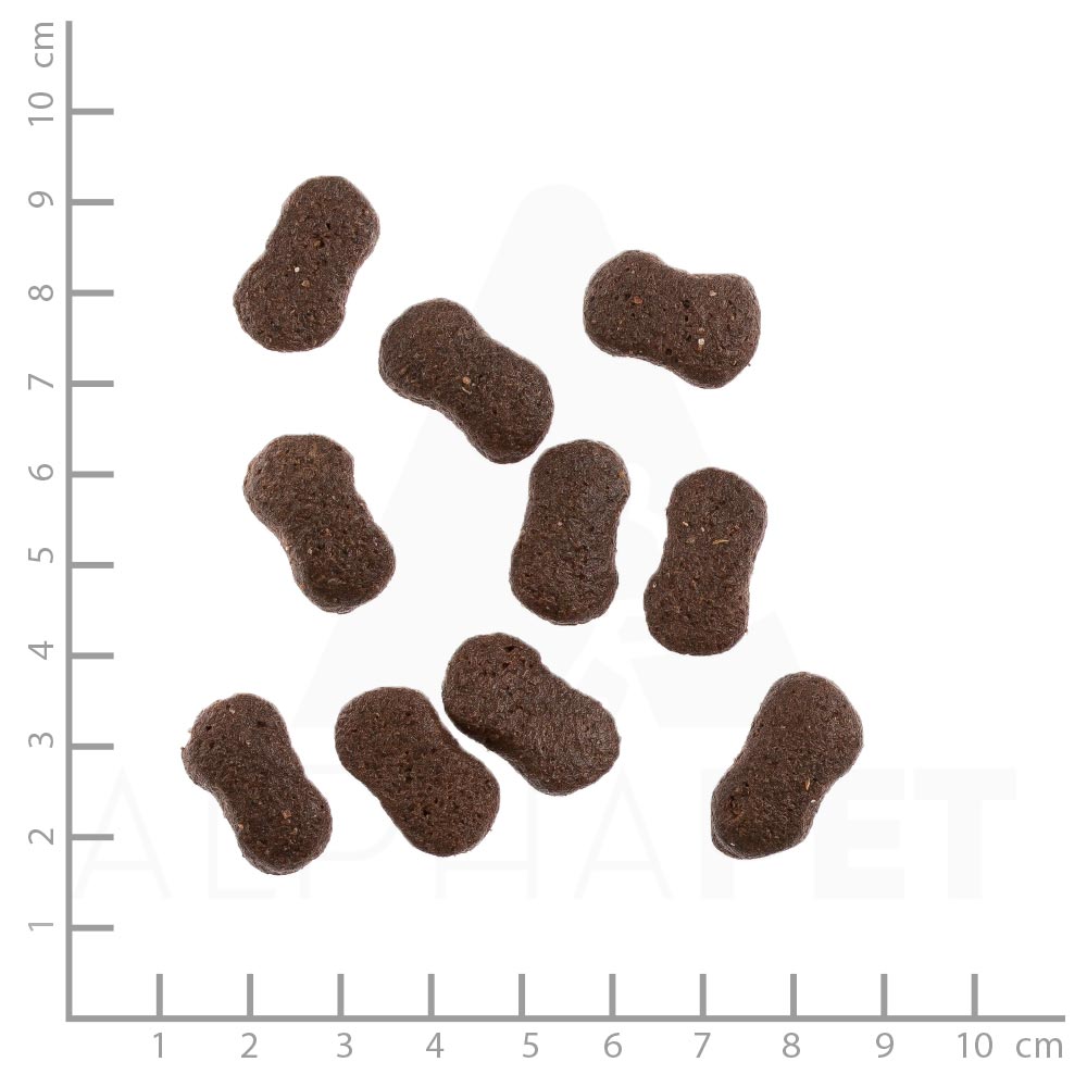 Frisches Lammfleisch 25 %, Lachsmehl 25 %, Kartoffeln 13 %, Erbsenstärke 12 %, Hühnerfett, Bohnen 6 %, Erbsen 4 %, Leinsamen 2,5 %, Bierhefe, Rübenmark, Meeresalgen 0,3 %, Chicoréemark,