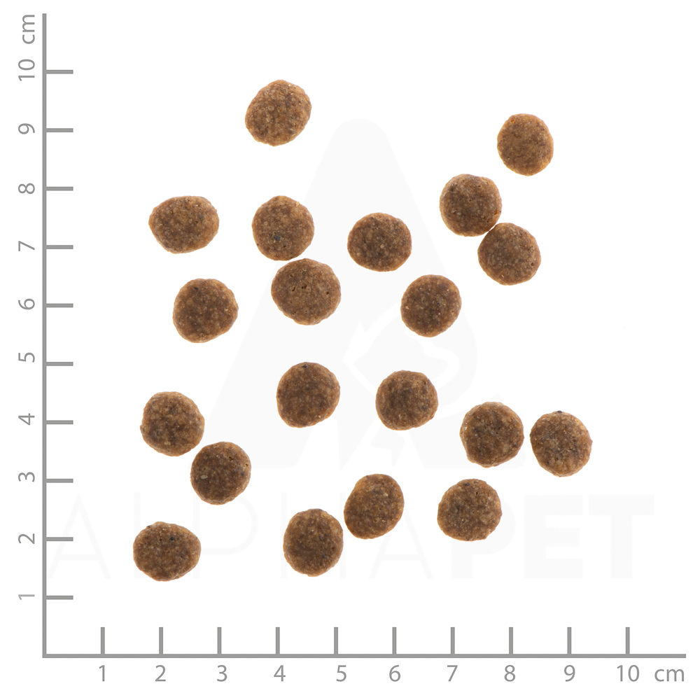 Frisches Entenfleisch 20 %, getrocknetes Entenfleisch 20 %, Erbsen 20 %, Kartoffeln 16 %, Hühnerfett, Bohnen 5 %, Leinsamen 3 %, Bierhefe, Rübenmark, Meeresalgen 0,3 %, Chicoréemark, Fructo-Oligosaccharide (FOS 0,2 %), Hefeextrakt (MOS 0,2 %), Yucca-Extrakt 0,03 %, Mariendistel 0,02 %, Löwenzahn 0,02 %, Rosmarin 0,02 %, Hibiskus 0,02 %, Hagebutte 0,002 %.
