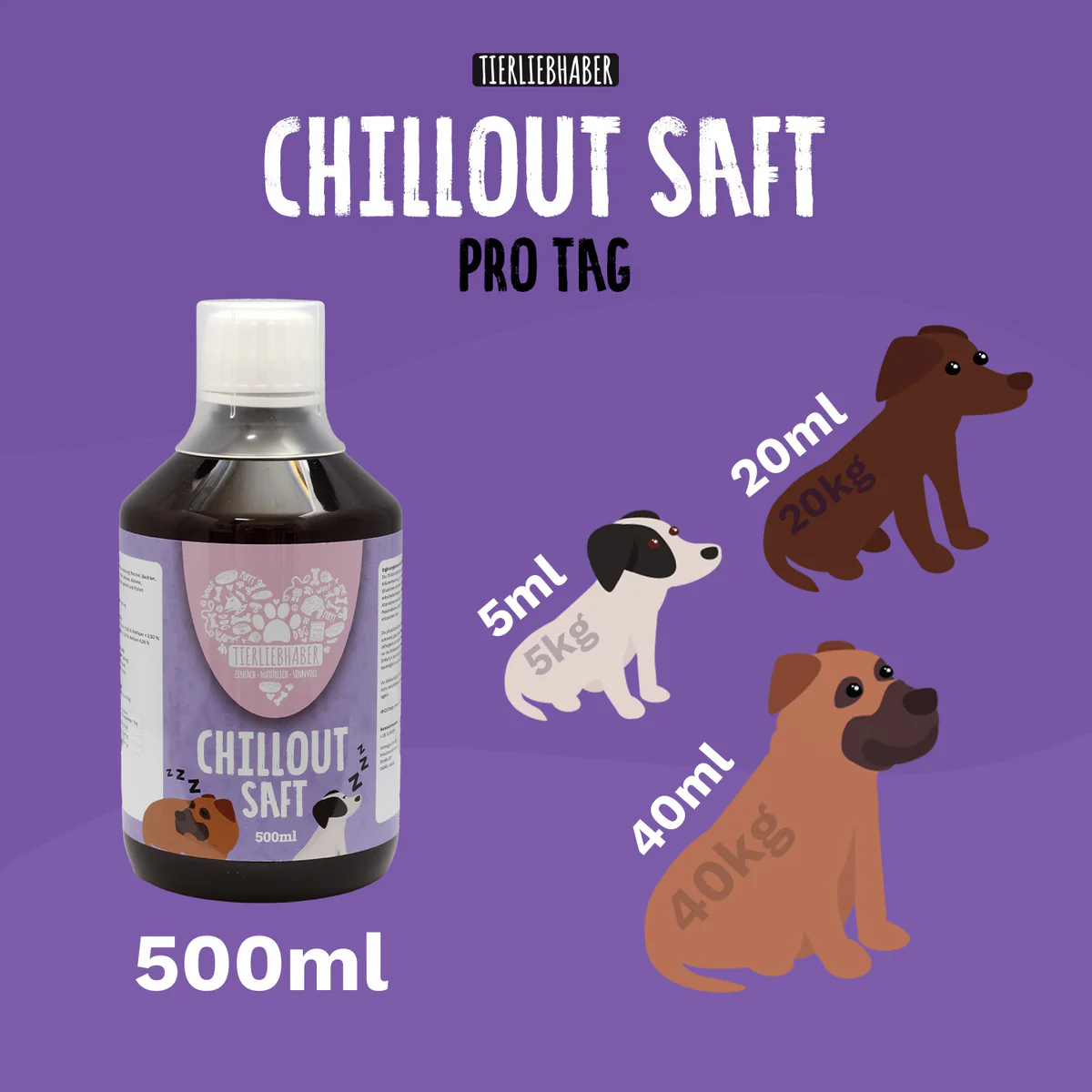 Produktinformationen "Tierliebhaber - Chillout Saft Beruhigung für Hunde 500 ml"