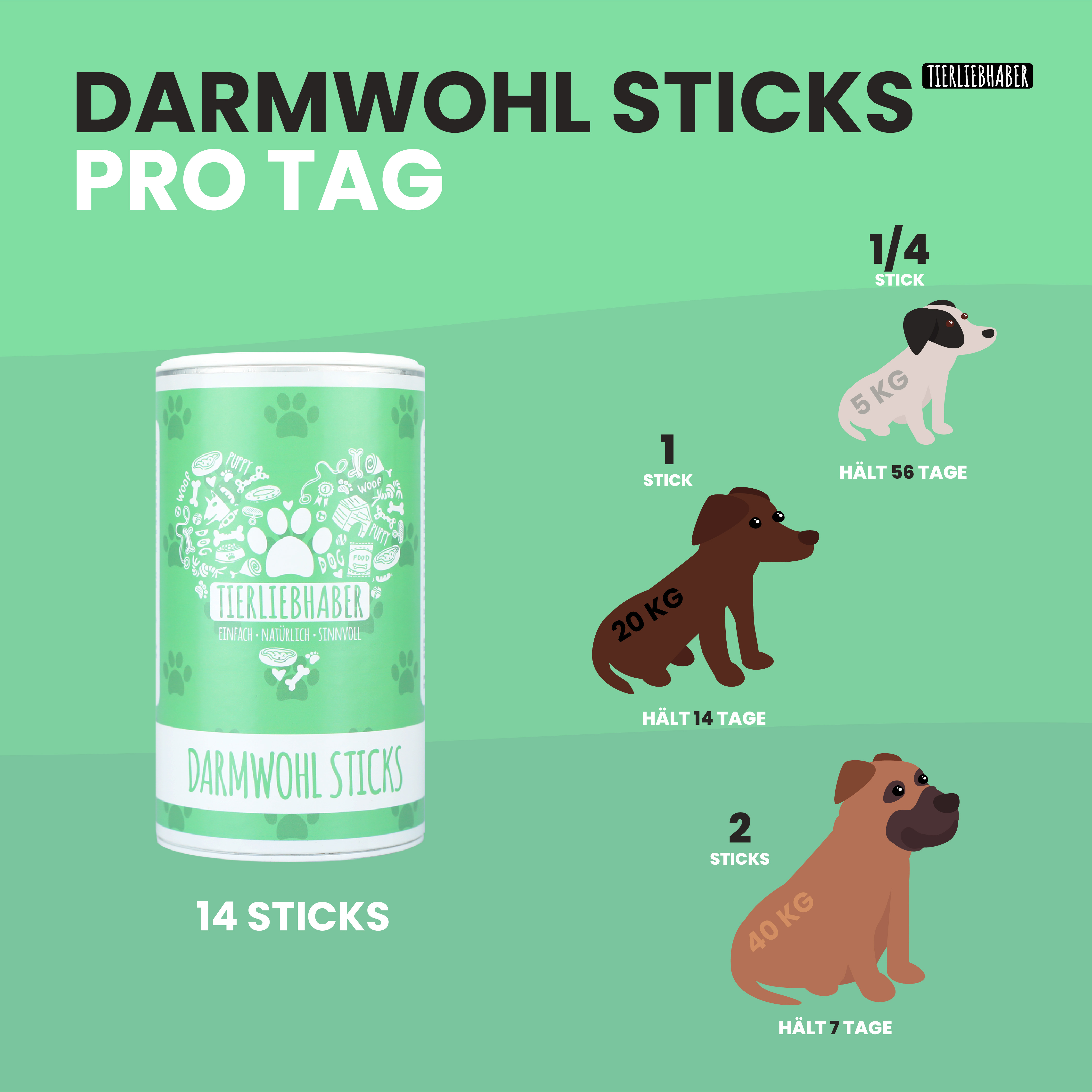 Produktinformationen "Tierliebhaber - Darmwohl Sticks für Hunde 350g (14 Steaks)"