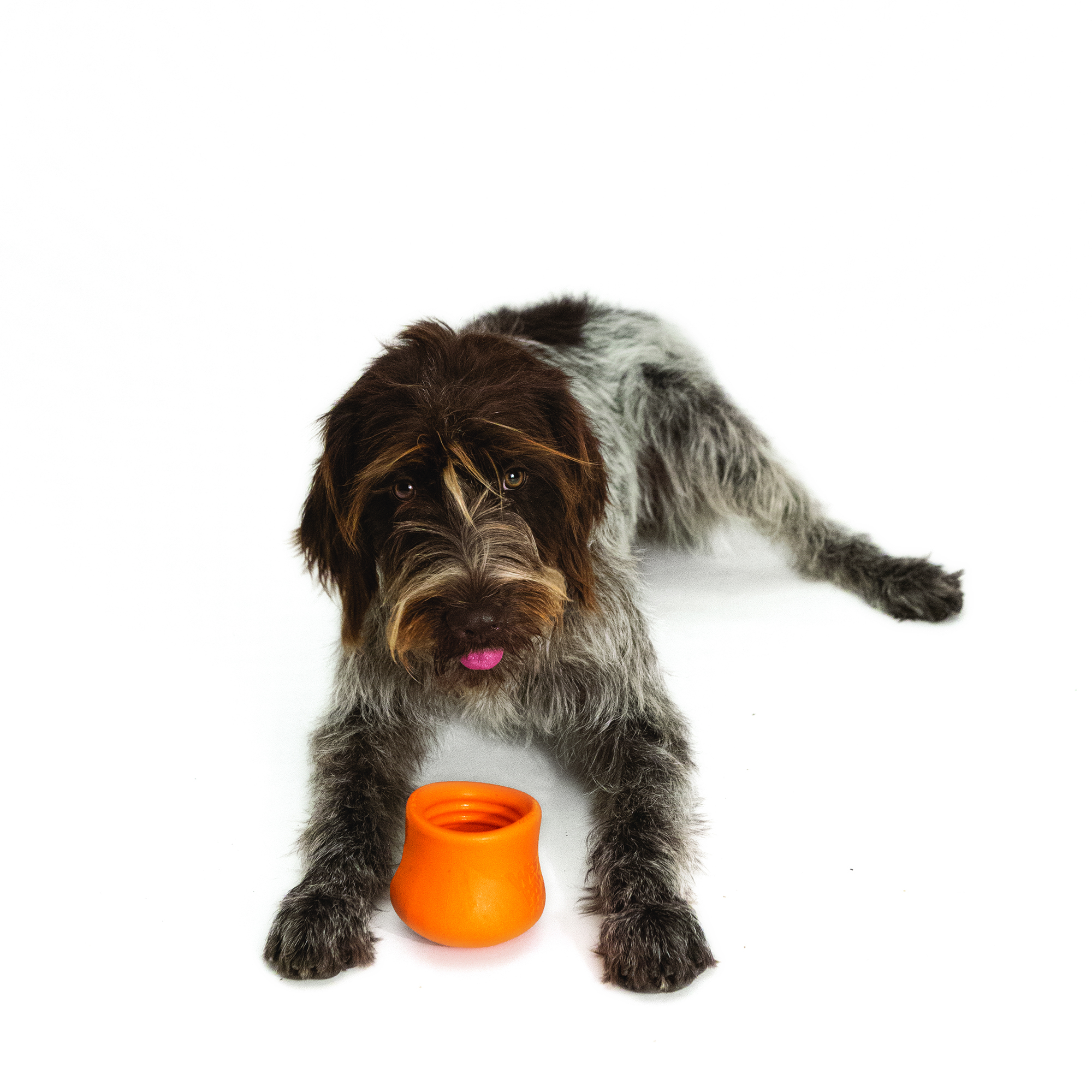 Ist es aber einmal verstanden, kann man das Spiel je nach Lust, Laune und Veranlagung des Hundes erweitern: Toppl® groß und klein befüllen und anschließend zusammen stecken... im nächsten Schritt ganz fest "verschrauben"... und die Königsdisziplin: Toppl groß und klein befüllt, fest verbunden und die Löcher (mit Snacksticks o.ä.) verstopfen. Sie werden erleben, welchen Ehrgeiz ihr Hund entwickelt und wie sehr ihn dieses Spiel auslastet.