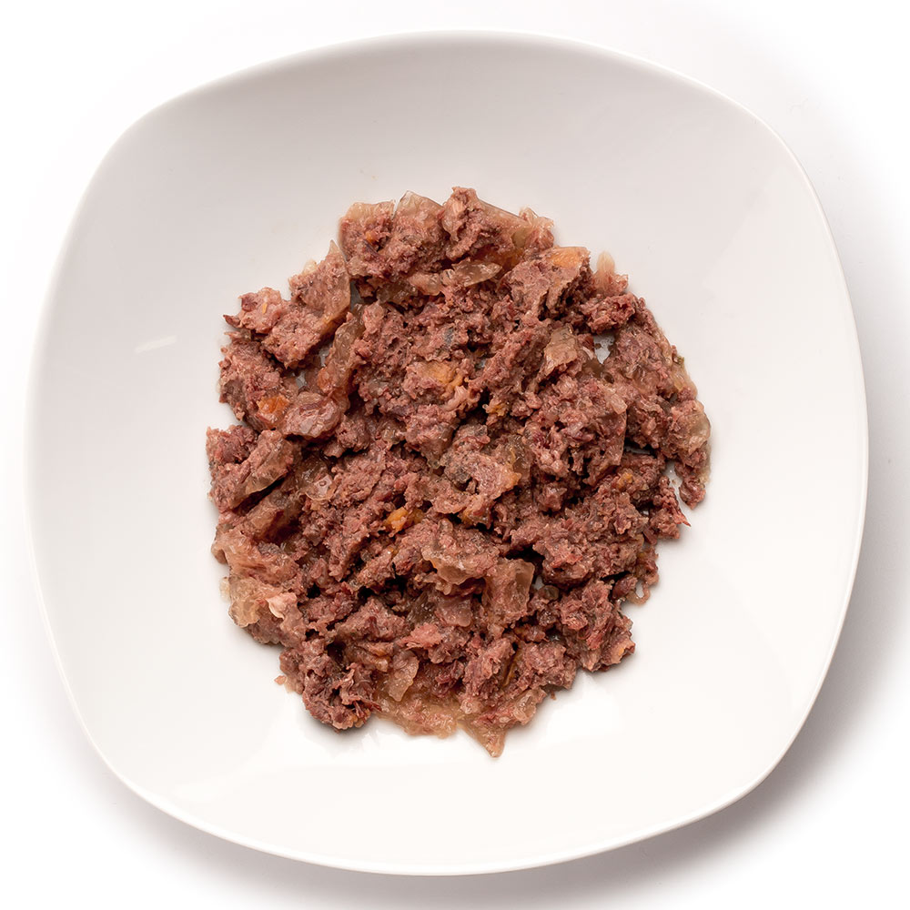 Pferd 65% (Herz, Fleisch, Leber), Brühe 27,5 %, Süßkartoffeln 4%, Karotten 2%, Mineralstoffe 1%, Distelöl 0,3 %, Kräutermischung 0,1% (Basilikum, Kamille, Löwenzahn, Petersilie, Rosmarin), Yucca-Extrakt 0,1%