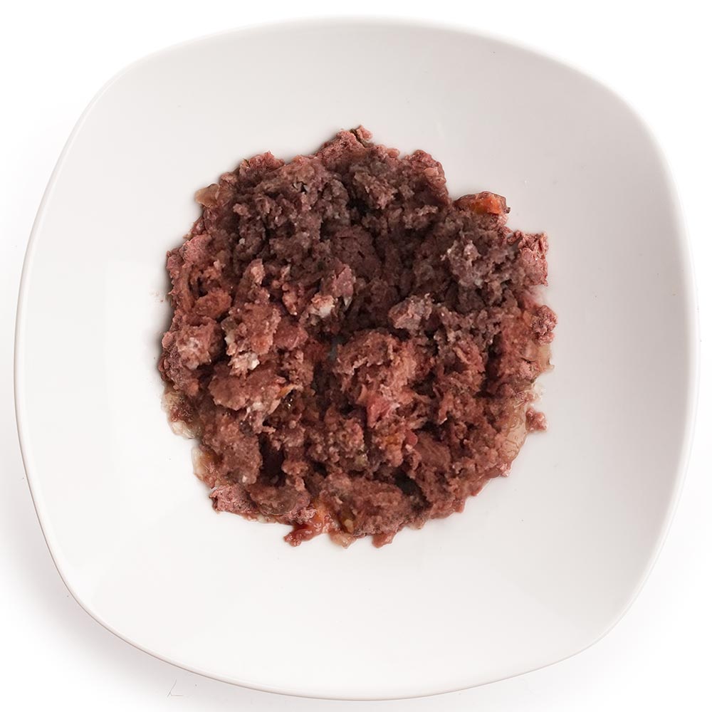 Wild 62% (Herz, Fleisch, Leber, Lunge, Pansen), Brühe 27,5%, Kürbis 4%, Karotten 3%, Preiselbeeren 2%, Mineralstoffe 1%, Distelöl 0,3%, Kräutermischung 0,1% (Basilikum, Kamille, Löwenzahn, Petersilie, Rosmarin), Yucca-Extrakt 0,1%