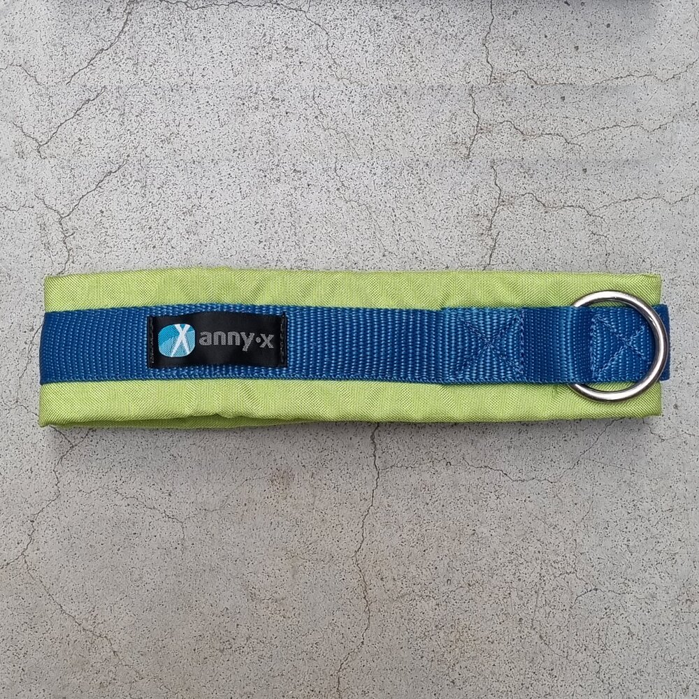 Größe 5, 6, 7 und 8 = 2,5 cm breites Gurtband, 5 cm breite Polsterung