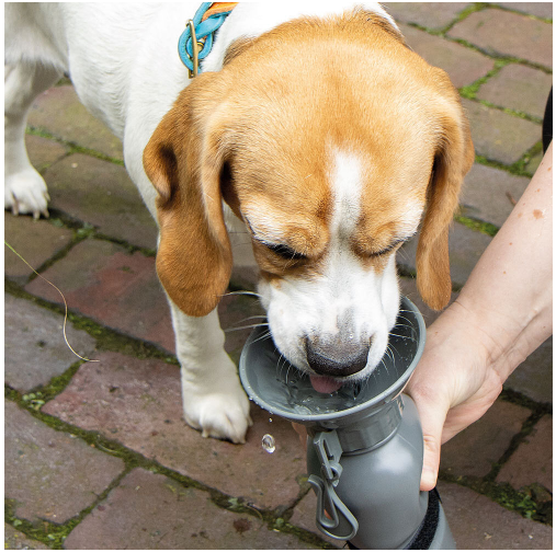 Mit der Trinkflasche NIA inklusive Trinknapf habt ihr stets frisches Wasser für euren Hund dabei!