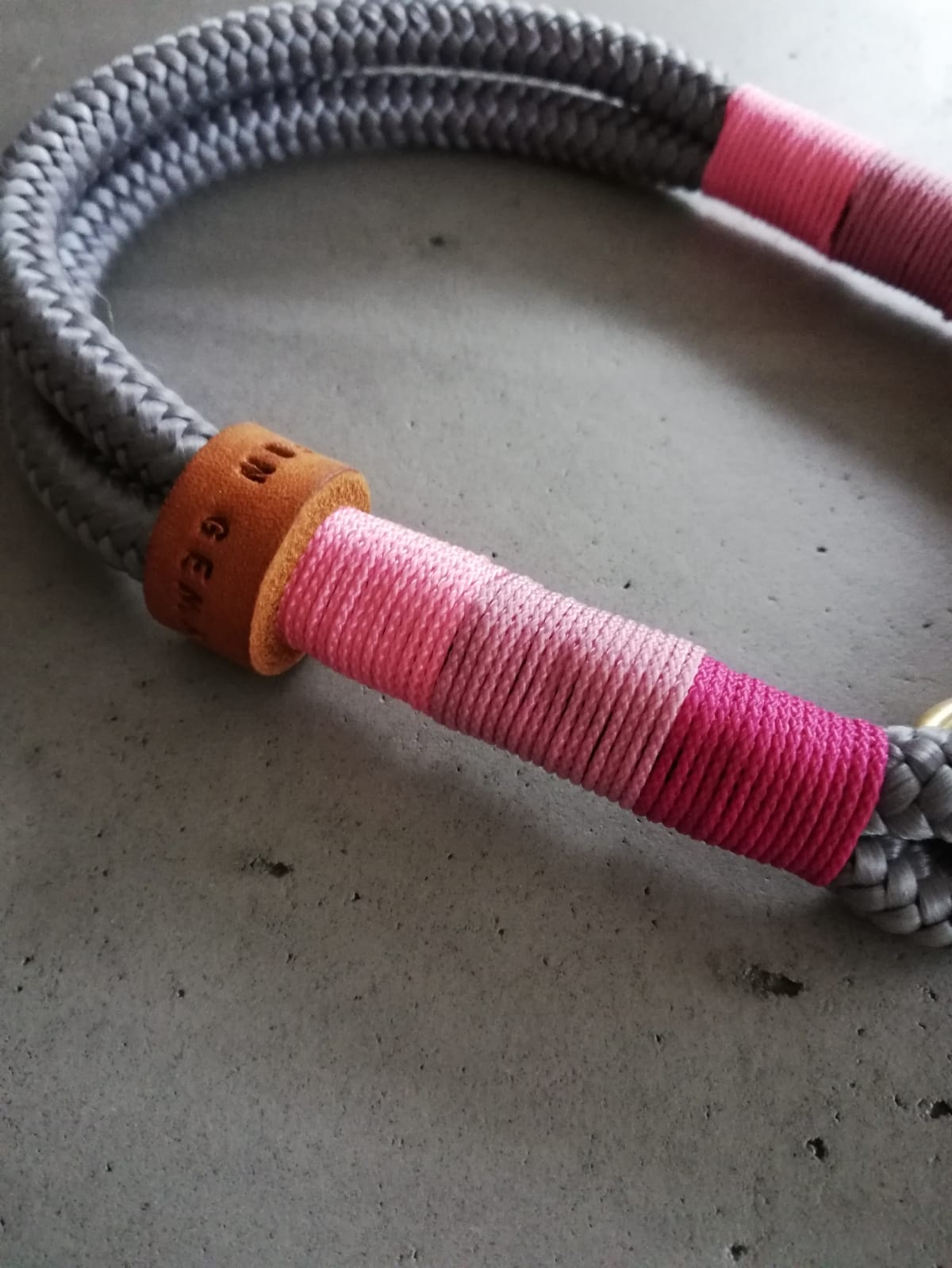 Produktinformationen "3-farbig getakeltes Tauhalsband grau-rosa"