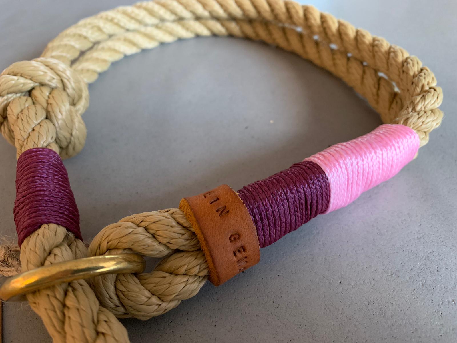 Das Tauleinen-Set besteht aus einer starken Tauleine mit passendem Schlupfhalsband 2-farbig getakelt.