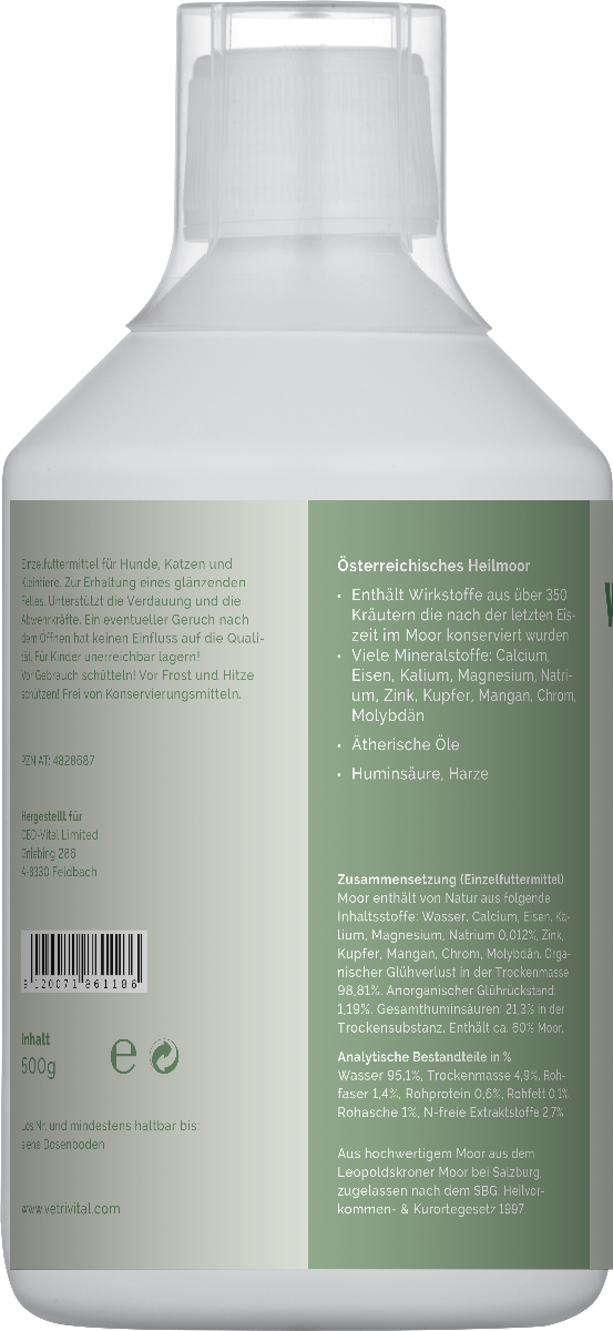 Produktinformationen "Tiermoor für Hunde und Katzen - Für Verdauung, Abwehrkraft, Entgiftung und Fellwechsel"